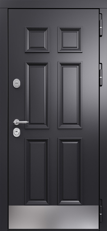 Входная дверь с МДФ №566 создана для тех, кто ценит прочность металла и уютный внешний вид в одном решении. Она одинаково хорошо вписывается в частный дом, квартиру или офис, подчеркивая солидность пространства и обеспечивая надежную защиту. Каркас и полотно собраны из профильных труб, усиленных ребрами жесткости, а стальной лист толщиной 2 мм гарантирует устойчивость к взлому и длительный срок службы. С обеих сторон дверь облицована МДФ панелями с ПВХ-покрытием, что делает поверхность более устойчивой к истиранию и мелким повреждениям, сохраняя привлекательность даже при интенсивной эксплуатации. Панели легко очищаются и не выгорают на солнце, благодаря чему дверь подходит и для уличной установки. Два контура уплотнения надежно защищают от сквозняков и посторонних запахов, а при необходимости можно дополнительно усилить конструкцию тепло- и шумоизоляцией. Модель №566 сочетает в себе сдержанный дизайн и функциональность, делая ее практичным выбором для самых разных помещений. Входная дверь с МДФ №566 от производителя: быстрое изготовление и монтаж в Тучково, индивидуальные размеры, широкий выбор материалов и фурнитуры, официальная гарантия до 10 лет.