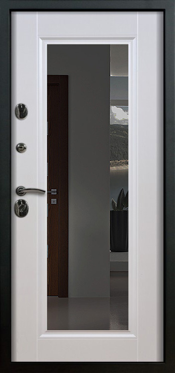 Металлическая входная дверь с зеркалом внутри №1 создана как универсальное решение для дома, квартиры или офиса, где важны и безопасность, и комфорт. Каркас выполнен из прочной профильной трубы с металлическим листом толщиной 2 мм и рёбрами жёсткости, что обеспечивает устойчивость к механическим воздействиям и долгий срок службы. Снаружи дверь покрыта порошковой окраской, стойкой к атмосферным влияниям и царапинам, а изнутри отделана МДФ с ПВХ-покрытием, которое сохраняет свежий вид даже при интенсивной эксплуатации. Встроенное зеркало превращает полотно в практичный элемент интерьера: оно визуально расширяет пространство прихожей и избавляет от лишних предметов мебели. Два контура уплотнителей защищают от пыли и сквозняков, а блокираторы усиливают общую надёжность конструкции. Модель не оснащена терморазрывом, зато отличается продуманным балансом практичности и доступной цены, оставаясь удобным вариантом для повседневного использования. Металлическая входная дверь с зеркалом внутри №1 от производителя: быстрое изготовление и монтаж в Тучково, индивидуальные размеры, широкий выбор материалов и фурнитуры, официальная гарантия до 10 лет.