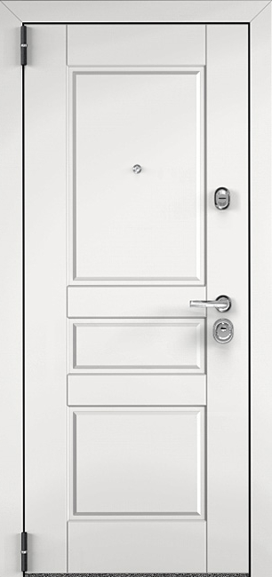Белая металлическая дверь входная для дома №33 выделяется своим свежим и современным обликом. Универсальный белый цвет делает её уместной как в частном коттедже, так и в квартире или офисе, визуально добавляя простора и подчеркивая аккуратность фасада или интерьера. Конструкция двери основана на стальном листе толщиной 2 мм и усилена профильными трубами, что гарантирует надежность и устойчивость к нагрузкам. Важная особенность модели — наличие терморазрыва в полотне и коробке: благодаря этому дверь не промерзает в зимний период, исключается конденсат и сохраняется комфорт внутри помещения. Внешняя и внутренняя отделка выполнена из МДФ с ПВХ-покрытием, которое защищает поверхность от влаги и механических повреждений, сохраняя первозданный вид надолго. Два контура уплотнителя обеспечивают герметичность и дополнительную защиту от сквозняков. Эта дверь удачно сочетает эстетику и практичность, создавая надежный вход в любое жилище. Белая металлическая дверь входная для дома №33 от производителя: быстрое изготовление и монтаж в Тучково, индивидуальные размеры, широкий выбор материалов и фурнитуры, официальная гарантия до 10 лет.