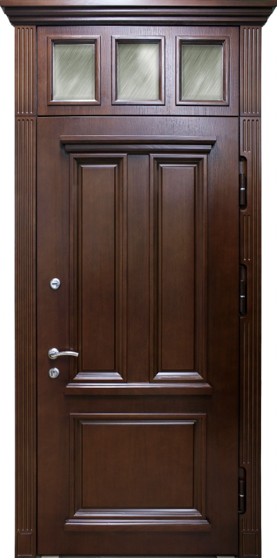 Дверь с сувальдным замком и фрамугой №34 идеально сочетает в себе стиль и надежность. Панель из натурального дерева, использованная как для внешней, так и для внутренней отделки, придает двери благородный и элегантный вид, делая её отличным выбором для помещений с классическим или современным интерьером. Каркас двери выполнен из профильной трубы 50х25 мм и усилен ребрами жесткости, что гарантирует прочность конструкции. Замки от производителей "Просам" и "Мосрентген" с тремя ригелями обеспечивают высокий уровень безопасности. Дверь оснащена уплотнителями с двумя контурами, что гарантирует отличную герметичность, а возможность замены замков и добавления кованых элементов делает её адаптируемой под любые требования. Кроме того, дверь можно дополнить зеркалом, стеклопакетом или видеодомофоном для еще большего комфорта. Входная дверь с сувальдным замком и фрамугой №34 от производителя: быстрое изготовление и монтаж в Тучково, индивидуальные размеры, широкий выбор материалов и фурнитуры, официальная гарантия до 10 лет.
