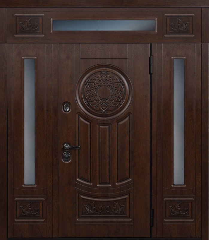 Эта нестандартная парадная дверь с фрамугой №6 — отличный выбор для тех, кто ценит элегантность и долговечность. Внешняя и внутренняя отделка из МДФ придает дверям стильный и современный вид, а также защиту от механических повреждений. МДФ устойчива к царапинам и вмятинам, что делает дверь идеальной для долгосрочной эксплуатации. Каркас из профильной трубы 50х25 мм и лист металла толщиной 2 мм обеспечивают прочность и надежность, а ребра жесткости из профильных труб гарантируют дополнительную устойчивость. В двери установлены блокираторы, два контура уплотнителей из резины, что повышает звуко- и теплоизоляцию. Замки от известных производителей, таких как Просам и Мосрентген, обеспечат надежную защиту. Возможность комбинировать отделку, добавлять зеркало, стеклопакет или кованые элементы позволяет легко адаптировать дверь под любые предпочтения. Нестандартная парадная дверь с фрамугой №6 от производителя: быстрое изготовление и монтаж в Тучково, индивидуальные размеры, широкий выбор материалов и фурнитуры, официальная гарантия до 10 лет.