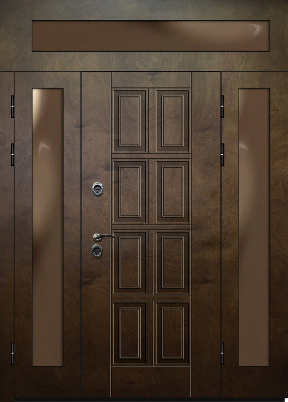 Входная дверь эконом класса с фрамугой №11 сочетает в себе надежность и доступность. Такая дверь прекрасно подходит для установки в местах с умеренной нагрузкой, обеспечивая необходимую защиту и эстетичный внешний вид. Внешняя и внутренняя отделка из МДФ с ПВХ-покрытием обладает хорошей устойчивостью к механическим повреждениям, а также отличается долговечностью. Конструкция из профильной трубы 50х25 мм и металлического листа толщиной 2 мм делает дверь прочной и устойчивой к нагрузкам. Дополнительные ребра жесткости усиливают ее стойкость. Резиновый уплотнитель с двумя контурами гарантирует защиту от холода и пыли, однако, для повышения шумо- и теплоизоляции можно заказать дополнительные опции. Эта модель — идеальный выбор для тех, кто ищет сбалансированное решение по разумной цене. Входная дверь эконом класса с фрамугой №11 от производителя: быстрое изготовление и монтаж в Тучково, индивидуальные размеры, широкий выбор материалов и фурнитуры, официальная гарантия до 10 лет.