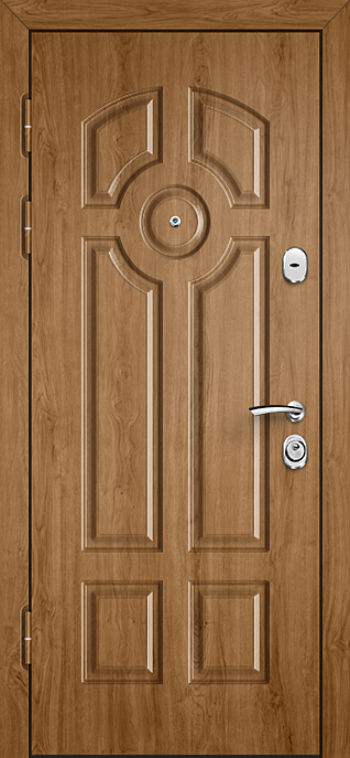 Филёнчатая отделка всегда придаёт дверному полотну особый шарм, создавая эффект глубины и аккуратного рельефа. Входная дверь МДФ с внешней панелью под филёнку №537 универсальна и одинаково хорошо смотрится на фасаде частного дома, в офисе или в квартире. Отделка из МДФ-плиты устойчива к мелким повреждениям, не выгорает и сохраняет аккуратный вид при ежедневной эксплуатации, а при необходимости легко комбинируется с другими декоративными элементами. В основе конструкции — каркас из профильной трубы, лист стали толщиной 2 мм и рёбра жёсткости, обеспечивающие надёжность и жёсткость всей системы. Для удобства и безопасности предусмотрены два замка: сувальдный Просам и цилиндровый Мосрентген. Два контура уплотнения повышают комфорт эксплуатации, а при желании дверь можно дополнить зеркалом, стеклопакетом или коваными вставками, сделав её не только прочной, но и выразительной частью интерьера. Входная дверь МДФ и внешней панелью под филенку №537 от производителя: быстрое изготовление и монтаж в Тучково, индивидуальные размеры, широкий выбор материалов и фурнитуры, официальная гарантия до 10 лет.