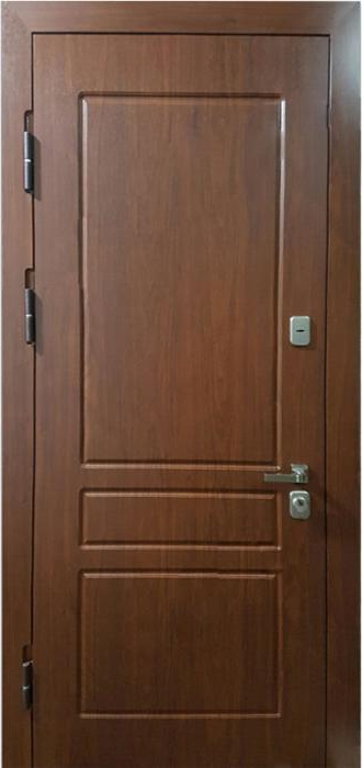 Дверь входная уличная с терморазрывом №41 – это надежная и стильная модель, идеально подходящая для частных домов и коттеджей. Конструкция двери с терморазрывом в коробке и полотне эффективно защищает от холодного воздуха и влаги, обеспечивая стабильный микроклимат внутри помещения. Внешняя и внутренняя отделка из панелей МДФ с ПВХ покрытием не только привлекает внимание своим современным дизайном, но и обеспечивает отличную стойкость к механическим повреждениям, а также долговечность. Металлическое полотно толщиной 1,5 мм с ребрами жесткости из профильных труб гарантирует высокую прочность, а также надежную защиту от взлома. Шумо- и теплоизоляция из пенопласта повышенной плотности создают дополнительный комфорт. Дверь оснащена высококачественными замками Kale Kilit с тремя ригелями, что обеспечивает высокий уровень безопасности. Дверь входная уличная с терморазрывом №41 от производителя: быстрое изготовление и монтаж в Тучково, индивидуальные размеры, широкий выбор материалов и фурнитуры, официальная гарантия до 10 лет.