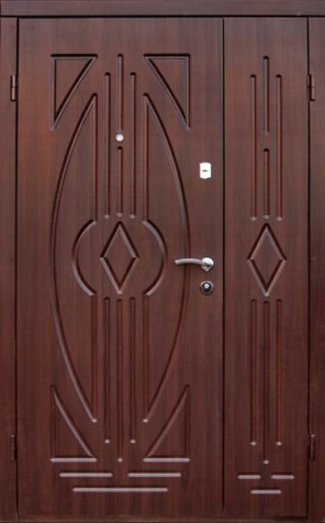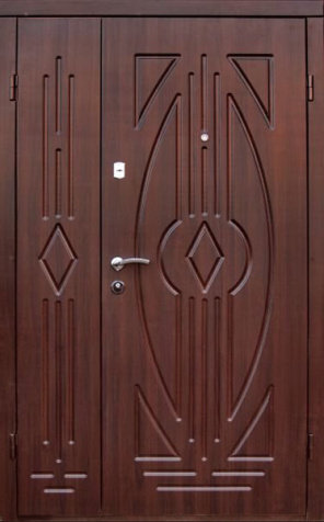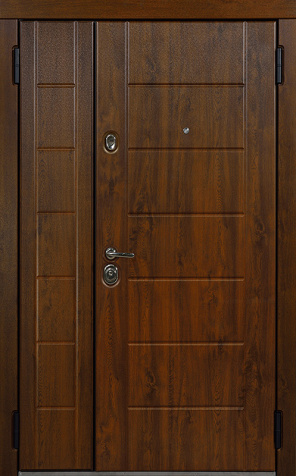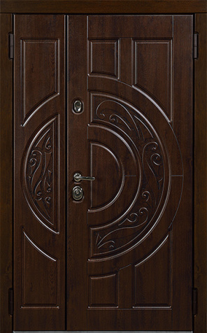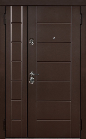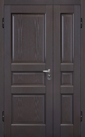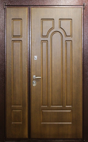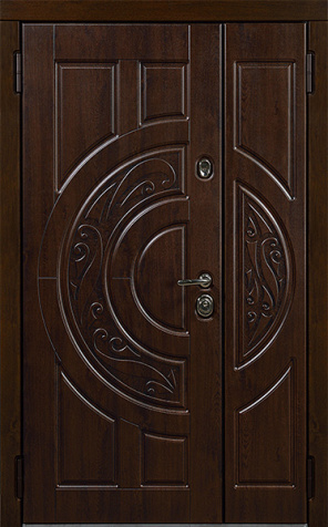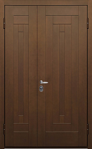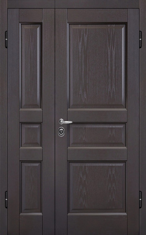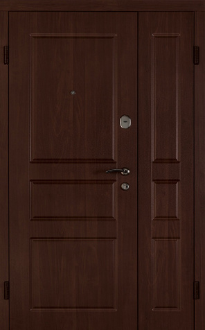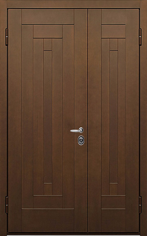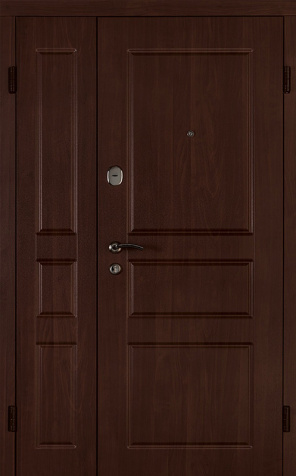 Двухстворчатая входная дверь с отделкой под темный орех №11
