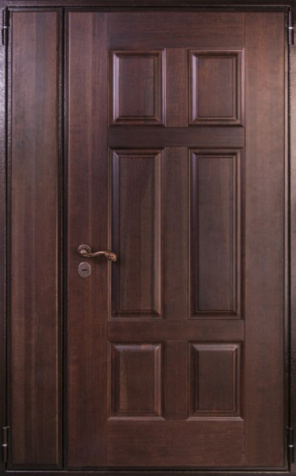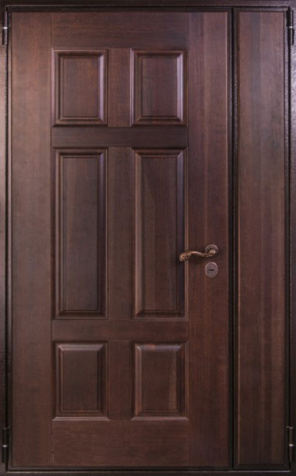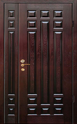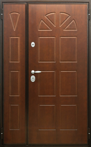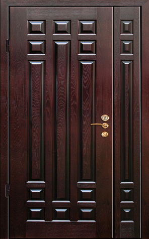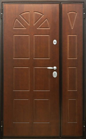 Коричневая входная полуторная дверь с филенчатой створкой №4