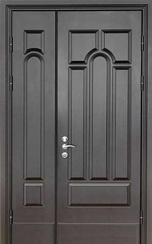 Металлическая двухстворчатая дверь с арочным стеклопакетом №15