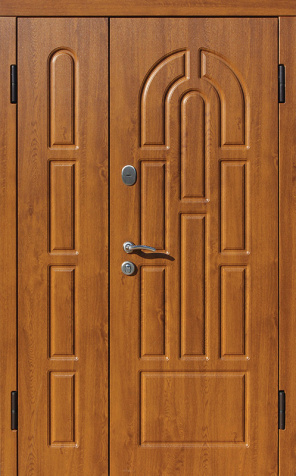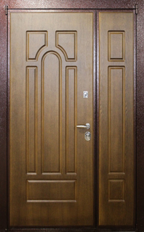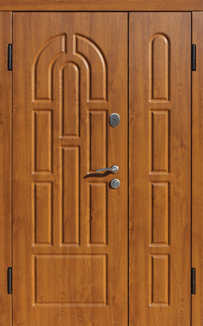 Полуторная входная дверь цвет дуб с фрезерованной аркой №9