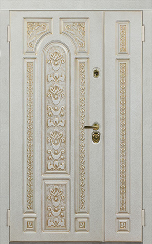 Дверь входная полуторная со стеклом цвет слоновая кость №16