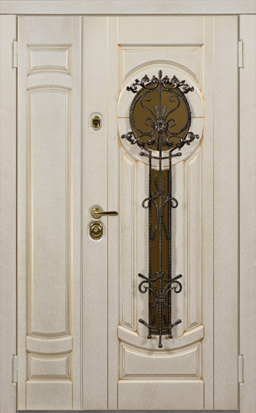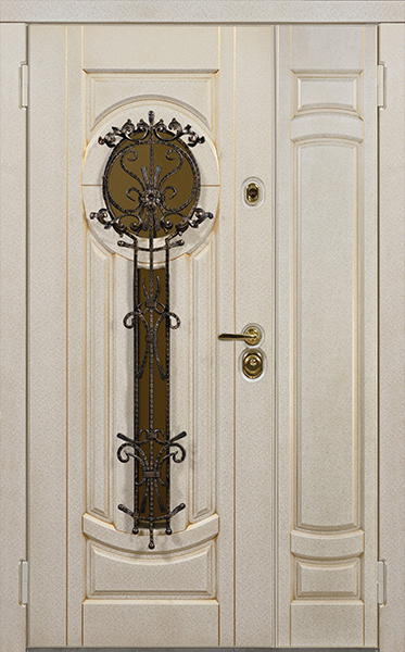 Двухстворчатая парадная дверь с ковкой и стеклом белая №30 — это сочетание красоты и надёжности. Конструкция из профильной трубы 50х25 мм и металлического листа толщиной 2 мм обеспечивает долговечность и стойкость к внешним воздействиям. Элементы ковки придают двери изысканный вид, а стеклопакет позволяет создать атмосферу лёгкости и прозрачности. Внешняя и внутренняя отделка выполнены из плиты МДФ, что делает дверь не только привлекательной, но и устойчивой к механическим повреждениям. Для дополнительной герметичности используются уплотнители с двумя контурами, а блокираторы обеспечат безопасность. Вариативность размеров и возможность добавления дополнительных опций, таких как шумо- и теплоизоляция, делают эту модель универсальной для установки в любом интерьере. Двухстворчатая парадная дверь с ковкой и стеклом белая №30 от производителя: быстрое изготовление и монтаж в Тучково, индивидуальные размеры, широкий выбор материалов и фурнитуры, официальная гарантия до 10 лет.