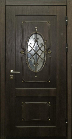 Дверь входная с ковкой и стеклом №27