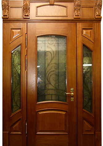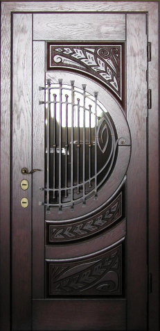Красивая шпонированная дверь с надежной фурнитурой и ковкой "лоза" №33