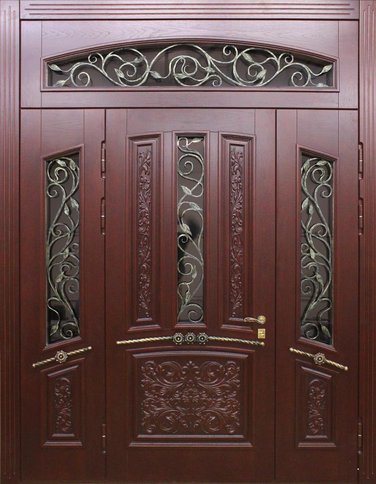 Большая входная дверь в частный дом со стеклом №328 создана для тех, кто ценит солидность и выразительный облик парадного входа. Широкое полотно на основе стальной конструкции с профилем 50х25 мм и листом металла толщиной 2 мм обеспечивает надежность и устойчивость к нагрузкам, а массив дуба в отделке придает дверному блоку статусный вид и долговечность. Натуральное дерево отличается стойкостью к повреждениям и долго сохраняет свой первозданный оттенок, что особенно важно для фасадных решений. Вставка из стекла добавляет естественного света в холл и делает интерьер более гостеприимным. Двойной контур резинового уплотнителя защищает от сквозняков, а наличие блокираторов повышает уровень безопасности. Такая дверь гармонично смотрится в коттеджах и частных домах, где парадный вход становится главным акцентом архитектуры. Большая входная дверь в частный дом со стеклом №328 от производителя: быстрое изготовление и монтаж в Тучково, индивидуальные размеры, широкий выбор материалов и фурнитуры, официальная гарантия до 10 лет.