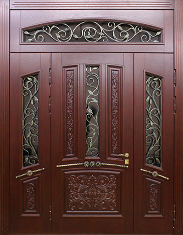 Эта модель создана для тех, кто ценит солидность и внушительный внешний вид парадного входа. Натуральный массив дуба в отделке придаёт дверному полотну статусный характер, а стеклянные вставки позволяют добавить света и лёгкости фасаду дома. При этом основа конструкции выполнена из прочной профильной трубы с использованием листа металла толщиной 2 мм и ребер жёсткости, что гарантирует надёжность и устойчивость к взлому. Двустворчатая входная дверь со стеклом №39 удобна для широких проёмов коттеджей и частных домов, обеспечивая не только безопасность, но и удобство при внесении крупногабаритной мебели. Итальянские замки Cisa сочетают в себе высокий класс защиты и плавность хода механизма, а наличие двух контуров уплотнения дополнительно защищает от сквозняков. Возможность комбинировать отделку, добавить зеркало, витраж или кованые элементы делает модель гибкой для индивидуального дизайна и подчеркивает её представительский статус. Двустворчатая входная дверь со стеклом №39 от производителя: быстрое изготовление и монтаж в Тучково, индивидуальные размеры, широкий выбор материалов и фурнитуры, официальная гарантия до 10 лет.