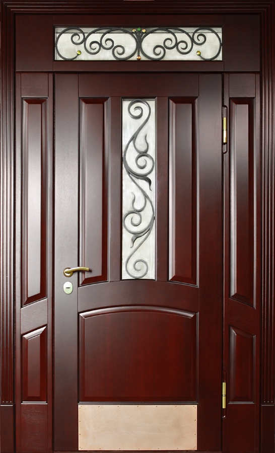 Красивая шпонированная дверь с надежной фурнитурой и ковкой "лоза" №33 идеально дополнит интерьер вашего частного дома или коттеджа. Внешняя и внутренняя отделка выполнены из натурального дерева, что придает двери элегантность и стиль. Профильная труба 50х25 мм используется для каркаса и полотна, а лист металла толщиной 2 мм и ребра жесткости из профильных труб 40х25 мм обеспечивают прочность и долговечность. Несмотря на отсутствие терморазрыва, дверь гарантирует надежную защиту и теплоизоляцию благодаря двум контурам уплотнения. Элементы ковки "лоза" придают двери особое очарование, сочетая практичность с эстетикой. Эта дверь — идеальный выбор для тех, кто ценит стиль, качество и безопасность. Красивая шпонированная дверь с надежной фурнитурой и ковкой "лоза" №33 от производителя: быстрое изготовление и монтаж в Тучково, индивидуальные размеры, широкий выбор материалов и фурнитуры, официальная гарантия до 10 лет.